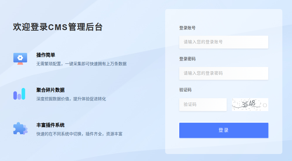 请手动修改浏览器的网址,在admin/后面加上index.php?m=admin-index即可正常采集